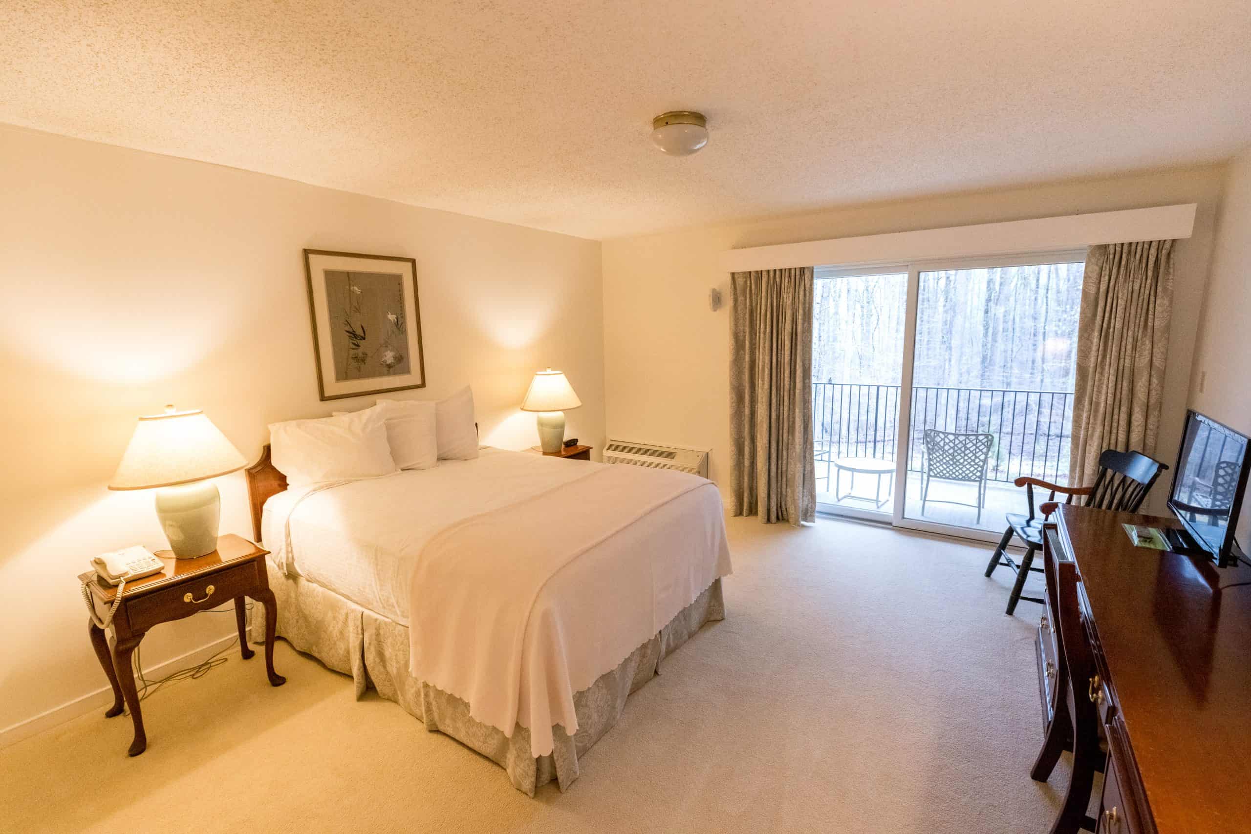 Our inn’s 38 spacious, comfortable rooms — many with a balcony or patio — offer a relaxing setting.